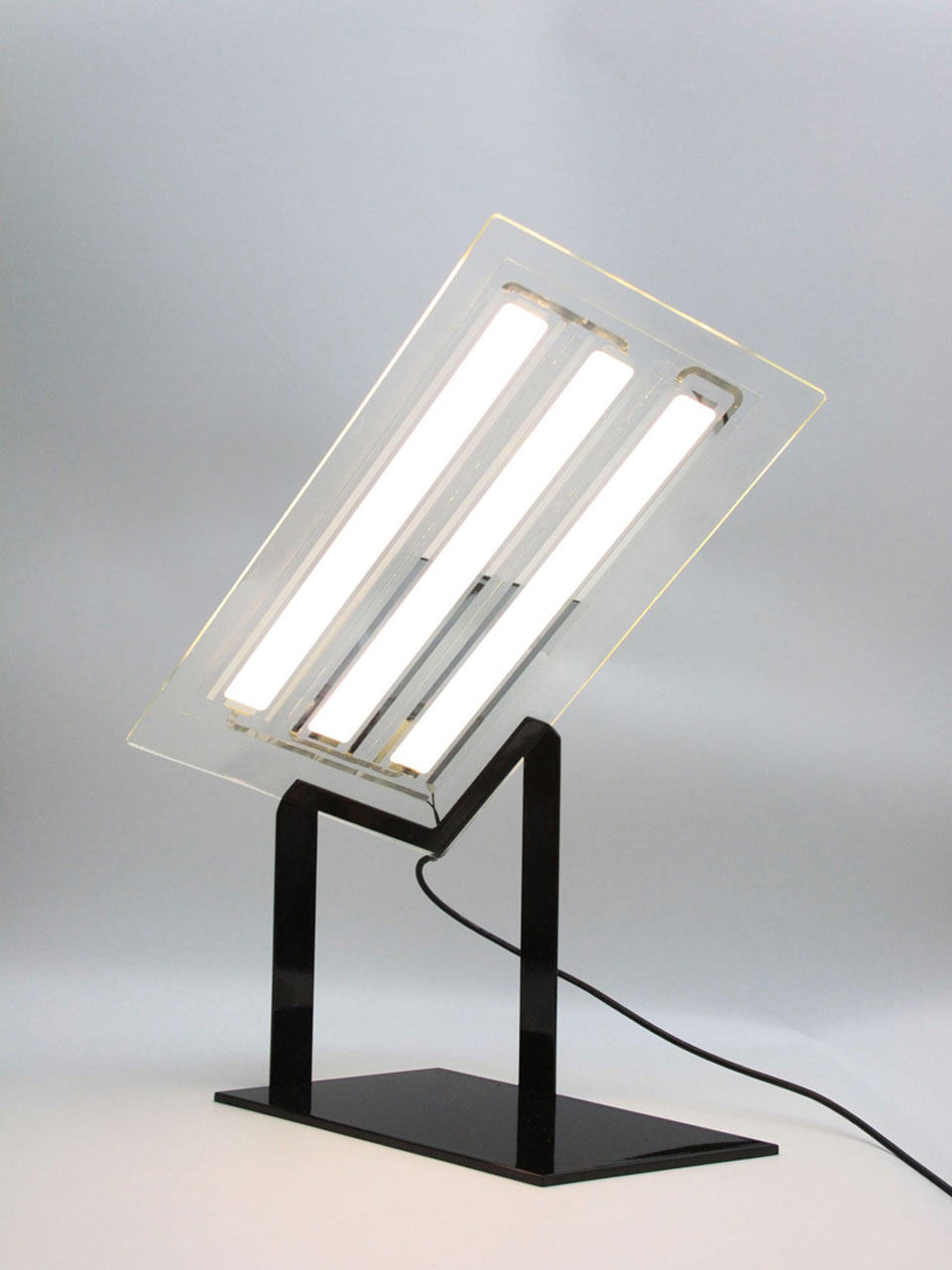 Dekx est un signal. L’Oled se lève. Comme sa technologie il est en développement. Il crée son reflet, son image virtuelle, elle-même faite de lumière.